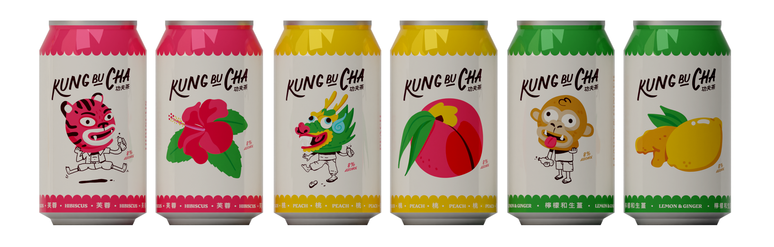 Meet Kung Bu Cha, our hard kombucha with a playful edge. At Brand New Food, we crafted a brand as lively as its flavors - Hibiscus, Ginger & Lemon, and Peach, each with an 8% kick. It’s not just tea; it’s an experience in every can. We've taken tradition and splashed it with modern fun. Our designs, from the eye-catching logo to social media posts, showcase our creative journey. Kung Bu Cha is our modern tribute to kombucha's roots, designed to delight and surprise. Check out our showcase for a snapshot of our branding magic.